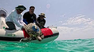 | أطلقت محمية الأمير محمد بن سلمان الملكية برنامج التتبع المباشر لحركة السلاحف صقرية المنقار والسلاحف الخضراء عبر الأقمار الصناعية، وذلك في أول عملية موثقة لتركيب جهاز تتبع لسلحفاة خضراء حاملة للبيض في مرحلة ما قبل التعشيش في البحر الأحمر.